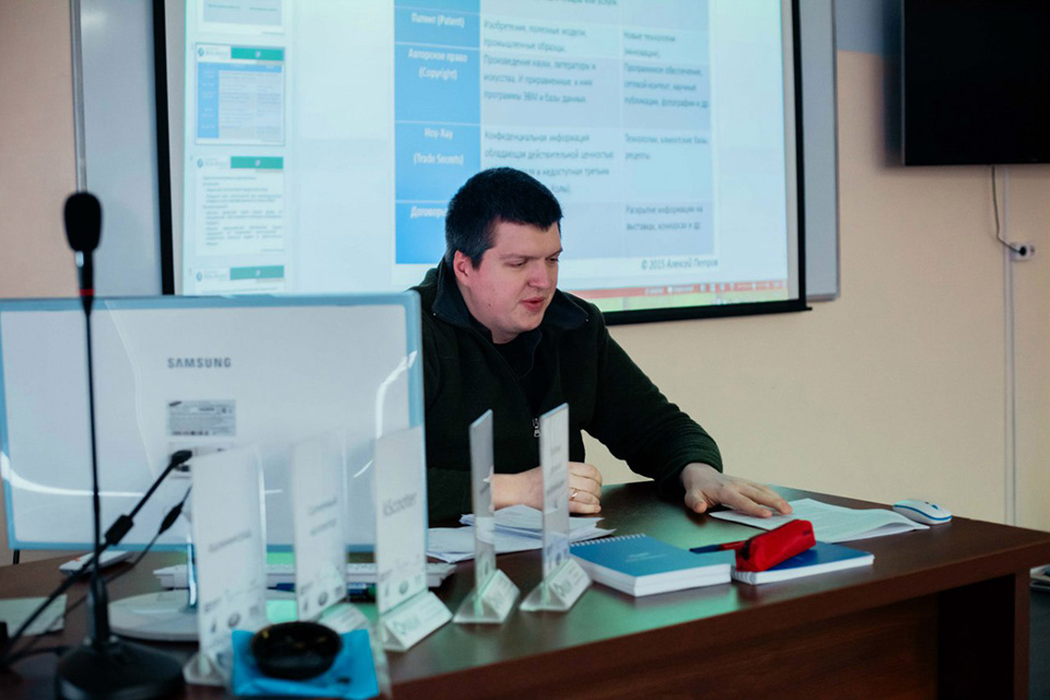 В рамках этой программы состоялась лекция по интеллектуальной собственности Алексея Петрова, который поделился опытом в области выявления, правовой охраны, управления и защиты интеллектуальной собственности в России и за рубежом, который накопила наша компания.